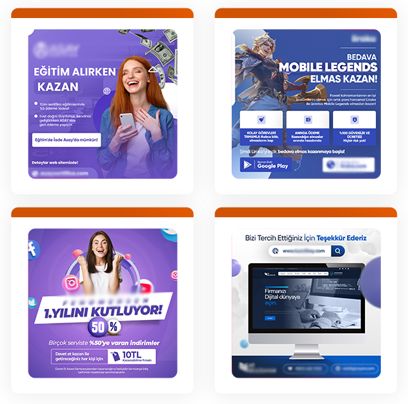• Görsellerinizle hedef kitlenizin dikkatini çekin ve zihinde kalıcı olun.